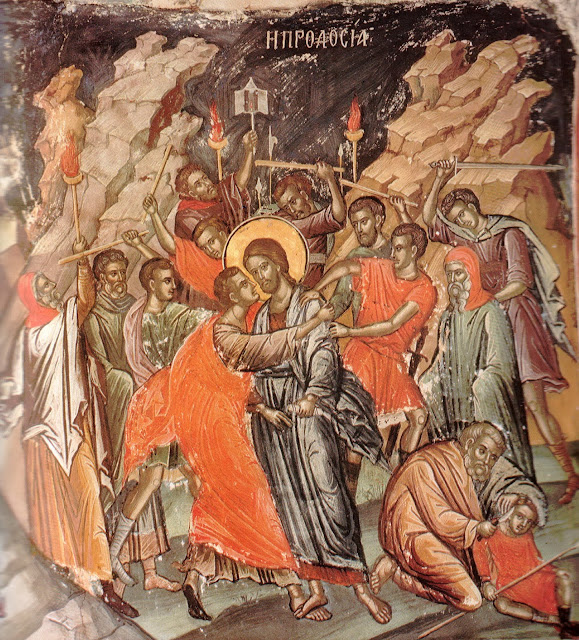 Vîndut pe 30 de arginţi cu Sărutul lui Iuda, în noaptea Ghetsemanilor, Iisus încape pe mîna celor ce Îi doreau moartea (mai marii evreilor), dar care aveau nevoie pentru aceasta de complicitatea puterii romane. Nesuferindu-i pe evrei, Pilat încearcă în fel şi chip să-L facă scăpat pe Hristos, dar în cele din urmă, spălîndu-se pe mîini, cedează presiunilor mulţimii asmuţite de farisei, care cere ferm eliberarea tîlharului Baraba şi răstignirea profetului din Nazaret (“Sîngele Lui asupra noastră şi asupra copiilor noştri!” – Matei 27, 25). Căindu-se de ce a făcut, Iuda returnează arginţii şi se spînzură (dublînd păcatul trădării cu acela al sinuciderii), iar Iisus este tîrît cu crucea în spate spre Golgota, îndurînd cele mai grele batjocuri.