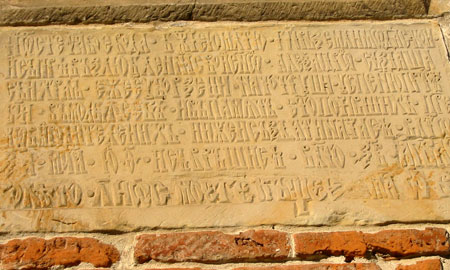 In pronaosul dominat de arcade al bisercii se observa o icoana care a fost scrijelita cu sabia de tatari, cu scopul vadit al unei asfel de profanari. In partea stanga, frumos ingradit cu lemne, un mormant de marmura din anul 1718 pastreaza ramasitele credincioasei Irina Rosetina, care a facut numeroase donatii bisericii si a dus o viata religioasa austera.