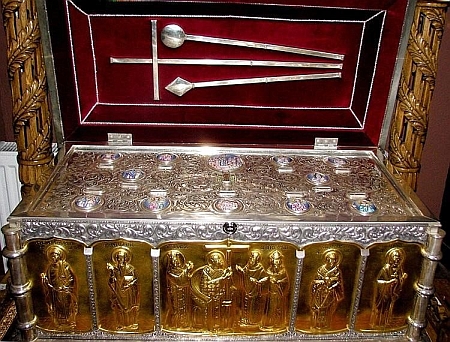 Partea superioara a fatadelor este impodobita cu medalioane in mozaic, realizate de pictorul Gheorghe Radu, in a doua jumatate a secolului trecut. Mozaicul exterior, lucrat de pictorul Ghoerghe Raducanu, a fost refacut, iar catapeteasma, pictata in anul 1895, de catre Gheorghe Stoenescu, a fost refacuta in anul 1989, de Gheorghe Samoila.