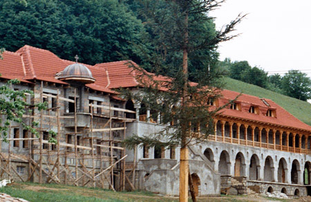 In septembrie 1998 se obtine transferul parintelui staret Avram Gheorghe, de la Dervent, care se instaleaza intr-o coliba simpla pe locul viitoarei manastiri. Acum incepe construirea primelor chilii si a salii de mese.