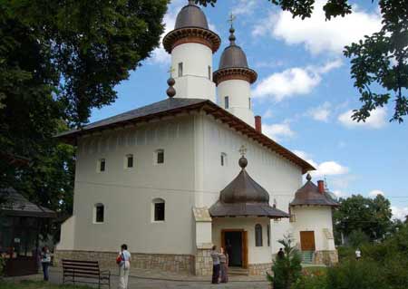 Biserica are forma de nava, avand pridvor, naos, pronaos si Altar. Cele doua turle ale acesteia sunt cilindrice, fiecare avand cate un acoperis in forma de clopot. In fata bisericii se afla statuia de bronz a Saftei Brancoveanu, care a ctitorit o parte din cele de folos manastirii. Statuia a fost lucrata de Ion Jalea, in anul 1935.