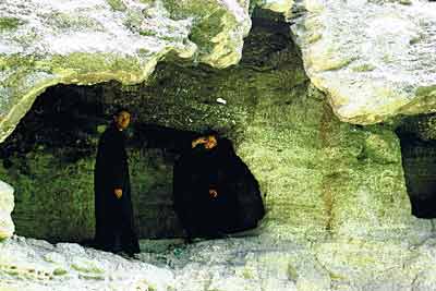 Am pornit intr-acolo insotiti de fratele Gelu, de la Manastirea Dervent. Dupa vreo 2 ore de drum, am ajuns in marginea Dumbravenilor, unde, in primavara acestui an, s-au pus bazele unei manastiri cu hramul „Acoperamantul Maicii Domnului“. Impreuna cu cei 2 parinti de aici, Antim si Teodor, am plecat spre misterioasele grote din peretele de calcar. Dupa vreo 4 kilometri printr-o zona aproape salbatica, acoperita de ierburi cu mirosuri amare, oprim masinile la poalele unui munte ros de soare si geruri. Undeva, in ochiul de cer de deasupra lui, un vultur deseneaza cercuri largi, hipnotice, incercand parca sa protejeze un loc de taina. „Acolo sunt bisericutele rupestre“, ne da de veste parintele Antim, aratand chiar spre culmea peste care pasarea plana maiestuos.