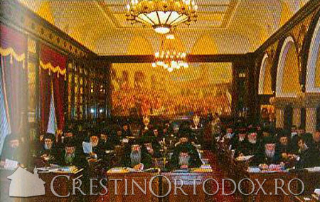 Si Sala Tronului, cum i-a zis patriarhul Miron Cristea, paralela cu sala de receptii, a fost restaurata si consolidata. Cele 6 coloane de sustinere din aceasta sala, din ciment buceardat, au fost inlocuite cu altele din marmura de Caprior, cu bazele, fusul si capitelurile sculptate artistic. Impodobita cu mobilier de lemn sculptat si ornamentat cu imagini din viata bisericeasca, ea a primit destinatia de sala de sedinte a Sfantului Sinod, cum este pana astazi, fiind numita Sala Sinodala.