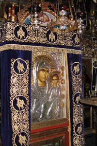 Pestera este situata intr-un spatiu ingust dintre doua stanci inalte, in care a fost creat un altar de rugaciune, luminat mereu de lumanari si candele aprinse de vizitatori.