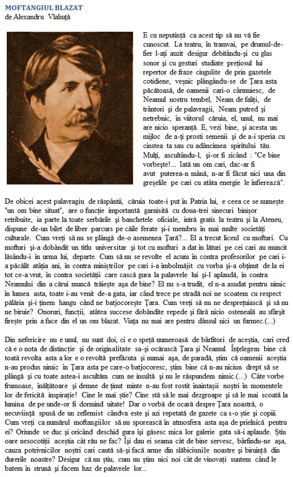 Plecat-am noua din Vaslui, Si cu sergentul, zece, Si nu-i era, zau, nimanui In pept inima rece. Voiosi ca soimul cel usor Ce zboara de pe munte, Aveam chiar pene la picior, S-aveam si pene-n frunte. Toti dorobanti, toti căciulari, Romani de vita veche, Purtind opinci, suman, itari Si cusma pe-o ureche. Ne dase nume de Curcani Un hitru bun de glume, Noi am schimbat linga Balcani Porecla în renume ! Din cimp, de-acasa, de la plug Plecat-am asta-vara Ca să scapam de turci, de jug Sarmana, scumpa tara. Asa ne spuse-n graiul sau Sergentul Matraguna, Si noi ne-am dus cu Dumnezeu, Ne-am dus cu voie buna. Oricine-n cale ne-ntilnea Cîntînd în gura mare, Statea pe loc, s-adimenea Cuprins de admirare; Apoi în treacat ne-ntreba De mergem la vro nunta ? Noi raspundeam în hohot: ,,Ba, Zburam la lupta crunta !" ,,Cu zile mergeti, dragii mei, Si să veniti cu zile !" Ziceau atunci batrini, femei, Si preoti, si copile; Dar cel sergent far' de musteti Racnea: ,,Să n-aveti teama, Romanul are septe vieti In pieptu-i de arama !" Ah ! cui ar fi trecut prin gînd S-ar fi crezut vrodata Ca multi lipsi-vor în curind Din mindra noastra ceata ! Priviti ! Din noua cîti cram, Si cu sergentul, zece, Ramas-am singur eu... si am In piept inima rece ! Crud e cînd intra prin stejari Naprasnica secure, De-abate toti copacii mari Din falnica padure ! Dar vai de-a lumei neagra stea Când moartea nemiloasa Ca-n codru viu patrunde-n ea Si cînd securea-i coasa ! Copii ! aduceti un ulcior De ape de sub stinca, Să sting pojarul meu de dor Si jalea mea adinca. Ah ! ochii-mi sint plini de scântei Si mult cumplit mă doare Când mă î la fratii mei, Cu toti periti în floare. Cobuz ciobanu-n Calafat Cinta voios din fluter, Iar noi jucam hora din sat, Rîzînd de-a boambei suier. Deodat-o schija de obuz Trasnind... minca-o-ar focul ! Reteaza capul lui Cobuz S-astfel ne curma jocul. Trei zile-n urma am razbit Prin Dunarea umilata, Si nu departe-am tabarit De Plevna blestemata. In fata noastra se-nalta A Grivitei reduta, Balaur crunt ce-ameninta Cu gheara-i nevazuta. Dar si noi inca o pindeam Cum se pindeste-o fiara Si tot chiteam si ne gindeam Cum să ne cada-n gheara ? Din ziori în ziori si turci si noi Zvirleam în aer plumbii Cum zvirli graunti de popusoi Ca să hranesti porumbii. Si tunuri sute bubuiau... Se clatina pamintul ! Si mii de boambe vîjîiau Trecînd în zbor ca vintul. Sedea ascuns turcu-n ocol Ca ursu-n vizunie. Pe când trageam noi tot în gol, El tot în carne vie Tintes era dibaci tunar, Căci toate-a lui ghiulele Loveau turcescul furnicar, Ducind moartea cu ele. Dar intr-o zi veni din fort Un glonte, numai unul, Si bietul Tintes cazu mort, Imbratisindu-si tunul. Pe-o noapte oarba, Bran si Vlad Erau în sentinele. Ferbea vazduhul ca un iad De boambe, de srapnele. In ziori gasit-am pe-amindoi Taiati de iatagane, Alature c-un moviloi De lesuri musulmane. Sarmanii ! bine s-au luptat Cu litfa cea pagina Si chiar murind ei n-au lasat Să cad-arma din mâna. Dar ce folos ! ceata scadea ! S-acuma ramasese Cinci numai, cinci flacai din ea. Si cu sergentul, sese !... Veni si ziua de asalt, Cea zi de sânge uda ! Parea tot omul mai inalt Fata cu moartea cruda. Sergentul nostru, pui de zmeu, Ne zis-aste cuvinte: ,,Cit n-om fi morti, voi cinci si eu Copii, tot inainte !" Facind trei cruci, noi am raspuns: ,,Amin ! si Doamne-ajuta !" Apoi la fuga am impuns Spre-a turcilor reduta. Alelei ! Doamne, cum zburau Voinicii toti cu mine ! Si cum la santuri alergau Cu scari si cu fasine ! Iata-ne-ajunsi !... inca un pas ,,Ura !-nainte, ura !..." Dar multi ramin fara de glas. Le-nchide moartea gura ! Reduta-n noi rapede-un foc Cit nu-1 incape gindul. Un sir intreg s-abate-n loc, Dar altul ii ia rindul. Burcel în sant moare zdrobind O tidva pagîneasca. Soimu-n redan cade racnind ,,Moldova să traiasca !" Doi frati Calini, ciuntiti de vii, Se zvircolesc în sânge; Nici unul insa, dragi copii, Nici unul nu se plânge. Atunci viteazul capitan Cu-o larga brazda-n frunte, Striga voios: ,,Cine-i Curcan, Si fie soim de munte !" Cu steagu-n mini, el sprintenel Viu suie-o scara-nalta. Eu cu sergentul dupa el Sarim delaolalta. Prin foc, prin spangi, prin glonti, prinfum, Prin mii de baionete, Urcam, luptam... iata-ne-acum Sus, sus, la parapete. ,,Allah ! Allah !" turcii racnesc, Sarind pe noi o suta. Noi punem steagul romanesc Pe crincena reduta. Ura ! maret se-nalta-n vint Stindardul Romaniei ! Noi insa zacem la pământ Cazuti prada urgiei ! Sergentul moare suierind Pe turci în risipire, Iar capitanul admirind Stindardu-n fîlfîire ! Si eu, când ochii am inchis, Când mi-am luat osinda: ,,Ah ! pot să mor de-acum, am zis, A noastra e izbinda !" Apoi, când iarasi m-am trezit Din noaptea cea amara, Colea pe rani eu am gasit ,,Virtutea militara !..." Ah ! da-o-ar Domnul să-mi indrept Aceasta mâna rupta, Să-mi vindec ranile din pept, Iar să mă-ntorc la lupta, Căci nu-i mai scamp nimica az Pe lumea paminteasca Decit un nume de viteaz Si moartea vitejeasca ! In memoria sergentului Constantin Turcanu (1854-1932) din Vaslui, participant la razboiul de independenta, al doilea razboi balcanic si primul razboi mondial. |