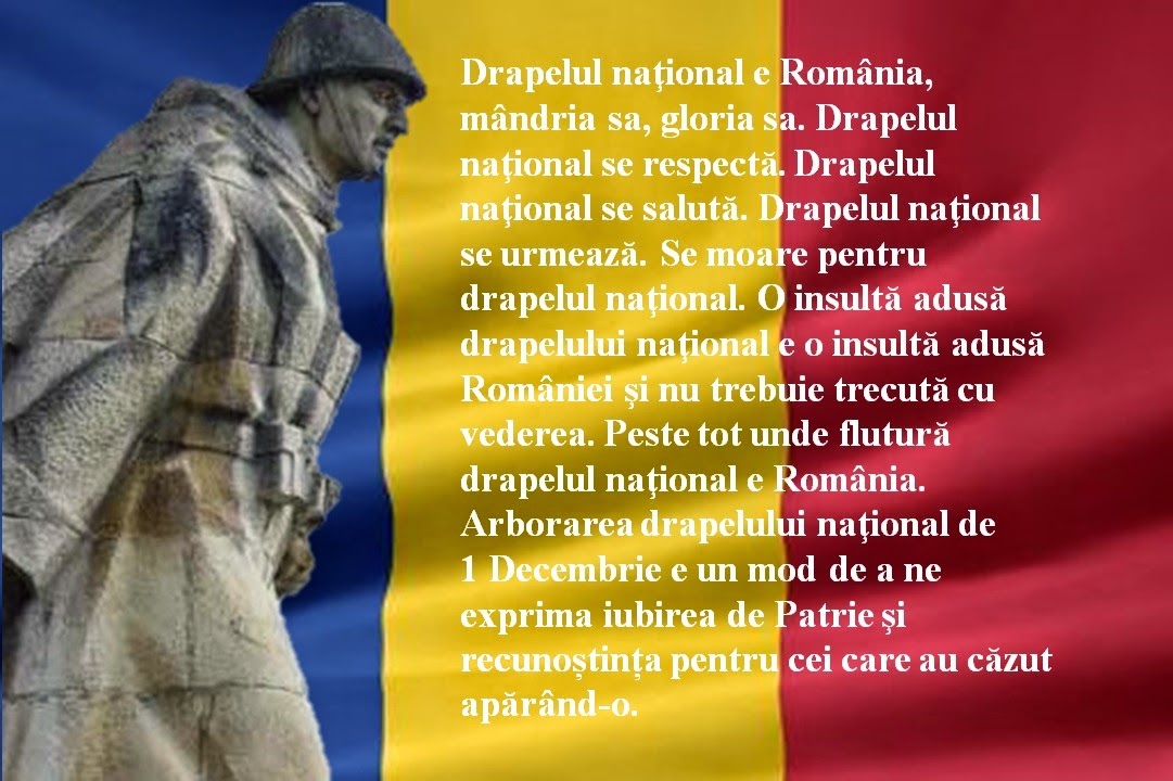 Mi-a plăcut întotdeauna ziua de 1 Decembrie. Era ziua când bunicul, veteran de război, arbora tricolorul la balcon. Era ziua când, copil fiind, vedeam oamenii mari renunțând la dispute și reamintindu-și că sunt frați. Până și vecinul cu care ne certam mereu venea să discute cu tata la o bere. Așa se face că 1 Decembrie mi s-a întipărit în minte ca o sărbătoare a înfrățirii. Șicanele pe care ni le facem reciproc, faptul că unii dintre noi sunt prea sărăci și unii prea bogați, nedreptățile, lipsurile nu trebuie să ne facă să uităm că suntem toți români. Să depășim, fie și numai o zi pe an, momentele când suntem dezbinați, când suntem dezorientați, când nu mai știm la ce să visăm, când considerăm cinismul inteligență, când indiferența ni se pare înțelepciune! Pierdem prea mult timp vorbind despre ce ne desparte. Să vorbim, măcar de Ziua Națională și despre ce ne unește. Despre tot ce e frumos în această viață pe care ne-o construim la noi în Țară, despre acești bărbați tineri care au devenit tați excepționali, despre aceste femei strălucitoare, curajoase, devenite mame iubitoare, despre tot ce ne poate îndreptăți să spunem „A noastră-i lumea!” Suntem un Popor generos, blând și dârz. Suntem un Popor inteligent și talentat. Suntem Popor ce poartă în inima lui mare căldura verii și feeria albă a iernii. Vocea noastră trebuie auzită și n-o putem face auzită decât dacă vom construi punți între noi, nu garduri. Tomescu Ionuț
