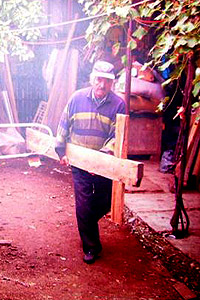 - In copilarie. Taiam lemnele cu fierastraul, ma punea tata la treaba si de la 12-13 ani m-a suit tata sus pe magar, ca n-avea cu cine sa taie lemnele. Eu stateam sus si el era jos si spintecam asa cateva bucati bune pe zi, munceam cu bratele si asa am invatat alaturi de tata. Mai tarziu am plecat la scoala de soferi si am lucrat ca sofer circa 30 de ani si-acum... iata-ma din nou la treaba in sat cu acest mestesug.