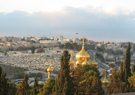 - Muntele Eleon - Muntele Inaltarii Domnului, de unde se poate admira panorama Orasului Sfant (Muntele Maslinilor)