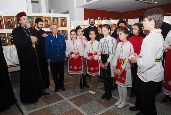 La vernisajul expozitiei am avut bucuria de a avea in mijlocul nostru pe Preasfintitul Parinte Vincentiu, Episcopul Sloboziei si Calarasilor, care a binecuvantat micii iconari si i-a felicitat. Preasfintia Sa a adresat parintilor prezenti indemnul de a-si indruma copiii catre lucrul bineplacut lui Dumnezeu. Chiriarhul a impartit apoi iconite cu Praznicul Nasterii Domnului tuturor celor prezenti la eveniment.