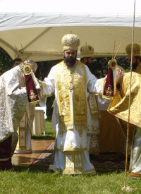 “Manastirea unde am construit biserica este in Upstate New York, in localitatea Mount Hope (Muntele Sperantei) de pe teritoriul statului New York. Pentru ca manastirea sa functioneze conform canonului, era nevoie si de o biserica. Proiectul s-a nascut acum vreo zece ani cand biserica din New York a obtinut titlul legal al proprietatii din Mount Hope. Dumitru Minciu si-a lasat proprietatea prin testament parintelui Vasile Vasilachi de la Biserica “Sfantul Nicolae” din New York. Parintele Vasile Vasilachi a fost un ctitor de biserici, a ctitorit si in Romania, a ctitorit si aici in New York si visul lui de-o viata a fost sa organizeze o manastire. Parintele era calugar si avea o deosebita aplecare spre viata monahala. Dupa ce am obtinut titlul de proprietate, am inceput sa organizam viata calugareasca. N-a fost usor pentru ca n-avem traditii pe teritoriul american, dar incet, incet, am reusit sa formam o comunitate de calugari veniti din Romania, de la diferite manastiri. Poate stiti, parintele Vasile Vasilachi a slujit si la Catedrala Patriarhala din Bucuresti si a fost staret la Manastirea Antim din Capitala in perioada 1944-1948. Acolo l-a prins razboiul. A lucrat zi si noapte la refacerea manastirii dupa razboi. Parintele Vasilachi s-a ocupat personal de refacerea cupolelor manastirii. Eu nu l-am cunoscut pe parintele Vasilachi decat foarte putin deoarece, la scurt timp dupa venirea mea la New York, a trecut la cele vesnice, dar a apucat sa-mi spuna cate ceva din cele intamplate atunci la Manastirea Antim unde a fost staret. Se pare ca a avut de-a face cu birocratia comunista din vremurile acelea, cand influenta rusa era foarte mare, si s-a “batut” cu cei de la Comisia Monumentelor Istorice, cu autoritatile romane si a reusit sa-i descurajeze ca sa nu “rusifice” pana si cupolele manastirii, adica sa nu le faca in forma de ceapa, cum se dorea atunci. Asa ca, daca vizitati Manastirea Antim, veti vedea niste frumoase cupole traditionale romanesti. Din nefericire, la presiunile celor ce detineau puterea politica in acele vremuri, parintele Vasile Vasilachi a fost indepartat de la Catedrala si din staretie, pe motiv ca facea parte din miscarea duhovniceasca, de fapt cercul literar-cultural “Rugul aprins”. Mai tarziu, parintele a trecut si prin ani grei de inchisoare. In 1964 a fost amnistiat si a ajuns preot in Ardeal. Dupa cinci ani, a venit in SUA, la solicitarea Episcopiei Misionare Ortodoxe din America si Canada, desfasurand aici pana la sfarsitul vietii o bogata si indelungata activitate pastorala si misionara. In ultimii ani ai vietii sale, parintele a reusit sa stranga fonduri importante si sa ajute la reconstruirea Bisericii “Sfantul Spiridon Vechi” din Bucuresti iar aici, in New York, a reusit sa stranga fonduri ca sa ridice o biserica in Queens unde este o concentratie mai mare de romani. Asadar la varsta de 75 de ani a ridicat Biserica “Sfantul Nicolae” din New York. A ctitorit foarte mult in viata lui, n-as putea sa insir toata lista de biserici care au beneficiat de donatiile stranse de parintele Vasilachi. Anul acesta s-au implinit 100 de ani de la nasterea parintelui Vasile Vasilachi si in curand se vor implini 25 de ani de la sfintirea Bisericii “Sfantul Nicolae” din New York, ctitorita de parintele Vasile Vasilachi. Pe aceasta tema, biserica noastra va organiza un simpozion in New York, la Universitatea Columbia, in data de 12 decembrie a.c.”