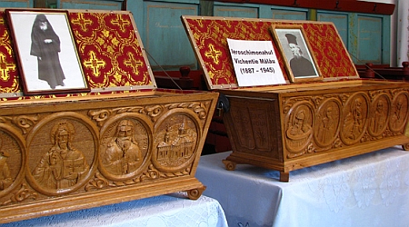 In paraclisul Adormirii Maicii Domnului se pastreaza si doua racle, maiestros sculptate in lemn, in care sunt asezate trupurile a doi mari duhovnici ai locului: ieroschimonahul Vichentie Malau (1887-1945) si ieroschimonahul Antim Gaina (1894-1974). Pentru inalta lor viata duhovniceasca, acesti doi mari duhovnici sunt cinstiti ca sfinti, de catre monahii din obste si de catre pelerinii evlaviosi. Chipurile celor doi parinti sunt zugravite deja in Biserica Invierea Domnului, din Radauti.