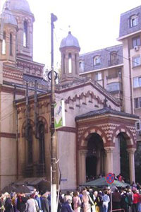Inca de luni seara foarte multi credinciosi s-au adunat la Biserica Zlatari, situata pe Calea Victoriei la numarul 12, pentru a participa la slujba Vecerniei si la citirea Acatistului Sfantului Mucenic Ciprian dar si pentru a se inchina la moastele acestui Sfant pe care crestinii il praznuiesc in data de 2 octombrie. Numarul credinciosilor a sporit si mai mult in aceasta dimineata cand preotii slujitori au oficiat Sfanta Liturghie. Racla de mici dimensiuni in care se afla mana dreapta a Sfantului Ciprian, facatoare de minuni,a fost scoasa spre inchinare afara, intr-un foisor amenajat in apropierea Sfantului Altar.